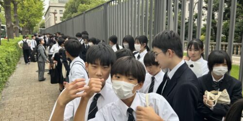 私語もなく、落ち着いた様子で行動し、グラウンドに出て、クラス別に集合し点呼。