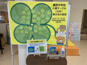 鎌田中学校人権サークル(KHR)の活動展示会が終わりました。たくさんの地域の方々が展示を見に来てくださったようで、感謝の気持ちでいっぱいです。