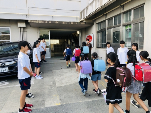 6月26日(水)朝7時45分から、第四小学校の登校の時に、第四小学校児童会と鎌田中学校生徒会とが合同で「あいさつ運動」を行いました。あいさつを交わすと、心がひらかれ、気持ちが良く、元気が出ます。中学生も小学生から、たくさんの元気をもらいました。ありがとうございました。