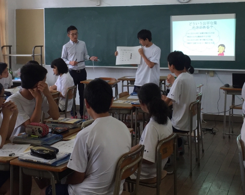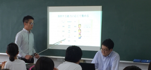 税の種類や税の使い道を教えていただき、公平な税の集め方を自分たちで考えました。私たちにとって身近なことだからこそ、税についてよく考えておくことが大切だと教えていただきました。