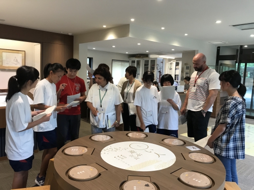 8月20日(火)イングリッシュキャンプが本居宣長記念館で行われ、本校からも参加をしました。外国から来たゲストに郷土の偉人(本居宣長)を紹介するという活動をしました。午前中、本居宣長について学習し、午後は学んだことを英語でALTの先生方にガイドをしました。英語で説明することに苦戦しながらも、一生懸命伝えようと頑張っている姿が見られました。