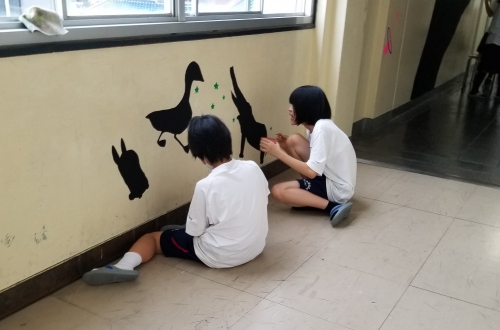 ホーム > 学校活動の様子 / 2019年度 美術部の活動~廊下の壁画~ 美術部は、来年取り壊される現在の校舎への感謝の気持ちを込めて、廊下の壁に絵を描いています。また、廊下の絵を見る人を幸せにできるようとの想いも込めて描いています。是非、一度実物の絵をご覧下さい。 シェアする Twitter でシェア はてなブックマークに保存 LINE でシェア Facebook でシェア Pocket に保存 Feedly で購読 関連投稿 1年 / 学校活動の様子 / 2020年度 1年防災訓練 学校活動の様子 / 2021年度 新年が始まりました! 2025年度 / 学校活動の様子 スマホ・ケータイ安全教室(eネットキャラバン)を実施しました 2025年度 / 学校活動の様子 表彰式、認証式、前期終業式を行いました。 1年 / 学校活動の様子 / 2021年度 1年生 交通安全教室がありました! 1年 / 学校活動の様子 / 2020年度 中間テストに向けて 前の投稿 避難訓練 次の投稿 後期生徒会役員候補者スローガン