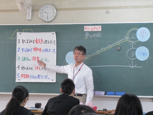 10月17日(木)、一般社団法人ドリームマップ普及協会から講師の先生(ドリマ先生)にお越しいただき、「ドリームマップ作り」の授業を行っていただきました。自分の「好きなこと」から自分を見つめていきました。その中でドリマ先生から、「みんな一人ひとり金メダルを持っている」とおっしゃっていたことが印象的でした。好きなこと、興味のあること、得意なこと、他人よりもうまくできたことなどが一人ひとりの金メダルになっているということでした。