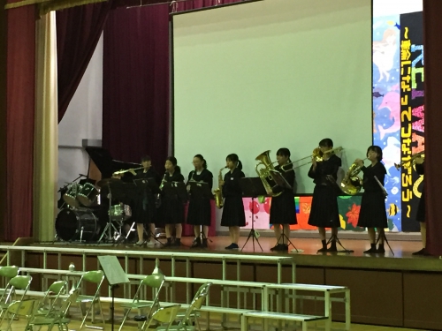 11月1日(金)第43回文化祭が「∞輪になってつながろう」をテーマに開催されました。子どもたちの一生懸命な姿が輝いており、この日のために練習や話し合いを重ねてきた成果が十分に発揮され、仲間とのつながりを深められた文化祭となりました。たくさんの保護者・地域の皆様にご参観いただきありがとうございました。写真は生徒会オープニングと吹奏楽部の演奏の様子です。