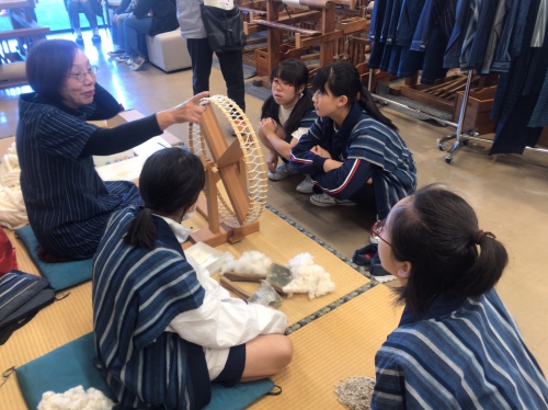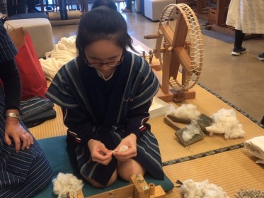 11月10日(日)に行われた松阪もめんフェスティバルに家庭部が参加しました。綿の実を綿と種に分ける綿繰りや、綿を糸車を使って糸にしていく糸紡ぎの体験をしました。最初は教えていただく側でしたが、すぐにやり方をマスターし、体験に訪れた小学生等に教えられるようにもなりました。松阪の伝統に触れる貴重な体験となりました。