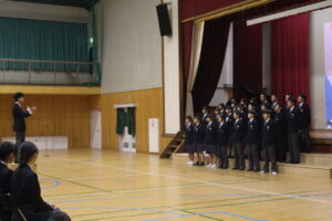 最後に3年生。最上級生としての姿勢と中学校生活最後となる合唱コンクールにかける思いを歌声に込め、美しいハーモニーが体育館中に響きわたりました。