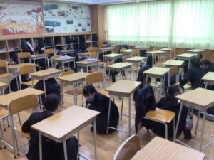 1月30日(金)に実施した避難訓練では、2年の生徒自身が主体となって「災害時のリアルを想定して取り組もう」という意図で2段階の訓練内容を企画しました。
