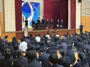 また、前期生徒会を務める生徒を紹介し、一人ひとりが決意表明しました。