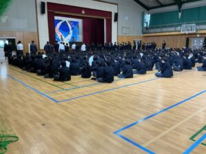 新しく級長・副級長・代議員として学級役員に任命された生徒一人ひとりの名前が呼ばれ、それに力強く返事をする姿が見られました。